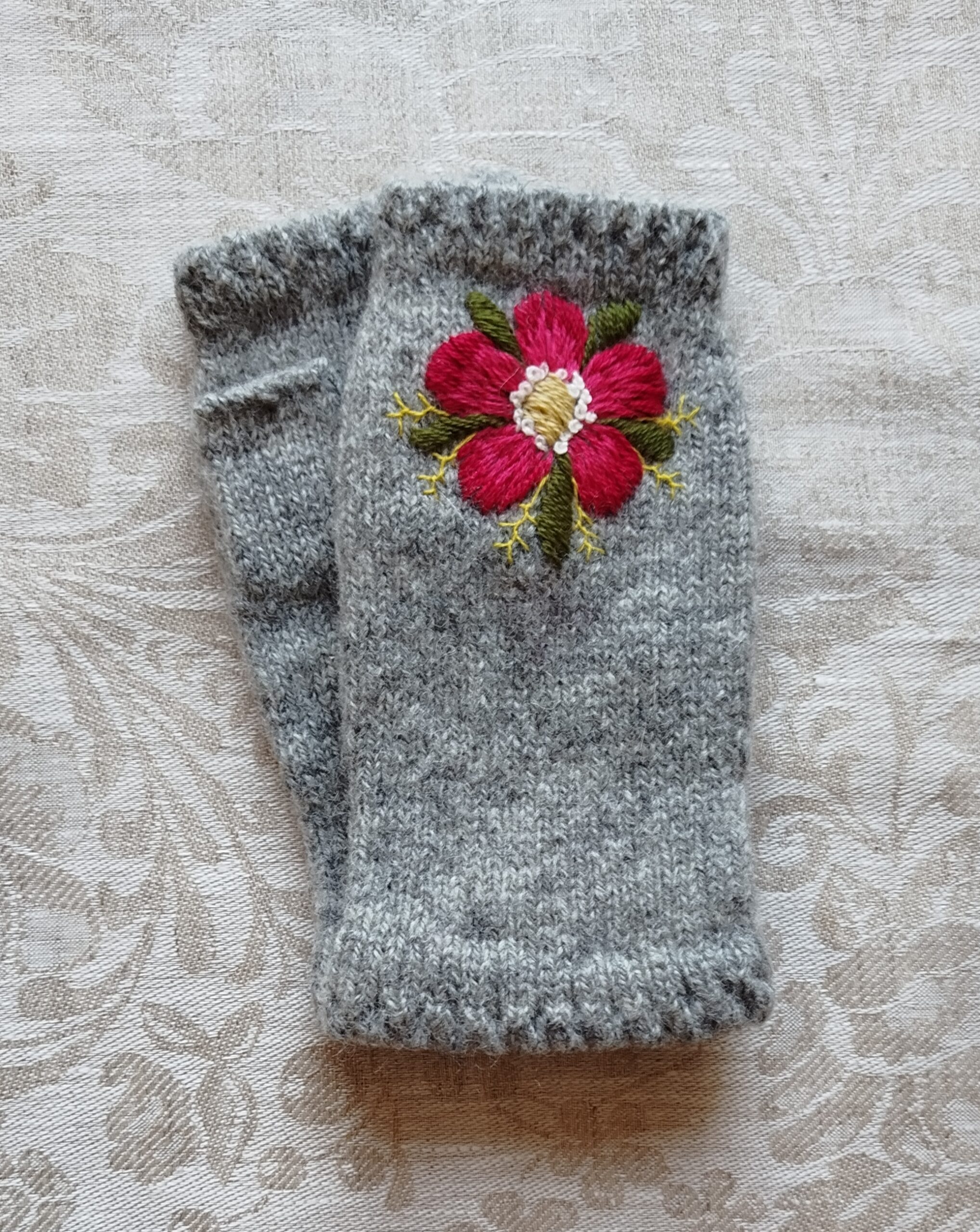 Käsi kudumismasinal kootud ning käsitsi tikitud kätised