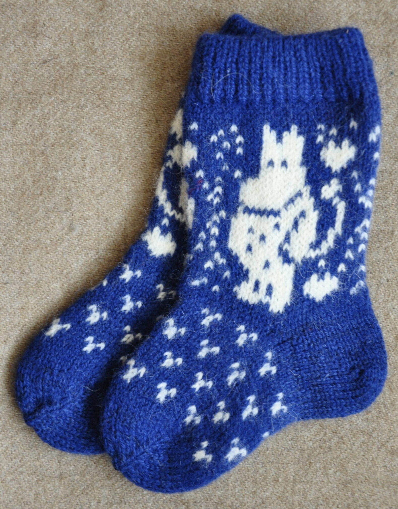 Kirjeldus: Käsikudumismasinal kootud sokid. Suurus21-22.